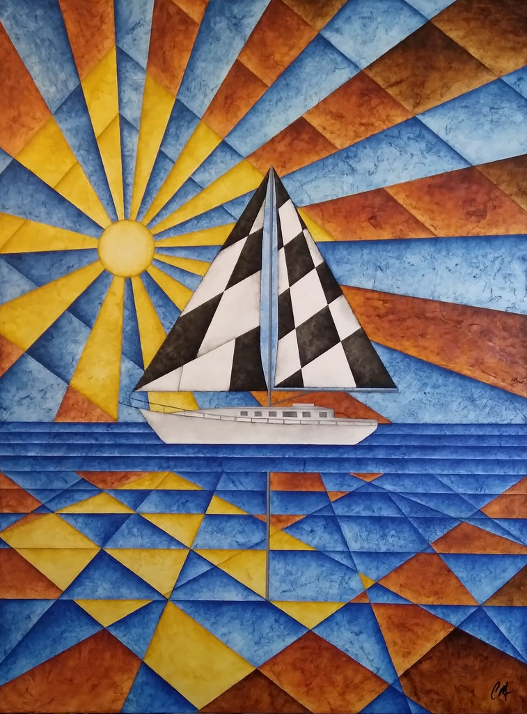 Title: "Cruising" Artist: Erik Hesson Medium: Oil on Canvas Year: 2025 Unframed Size: 30" x 40" Style: Linear Perspectivism