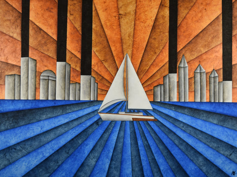 Title: "Golden Hour" Artist: Erik Hesson Medium: Oil on Canvas Year: 2025 Unframed Size: 40" x 30" Style: Linear Perspectivism