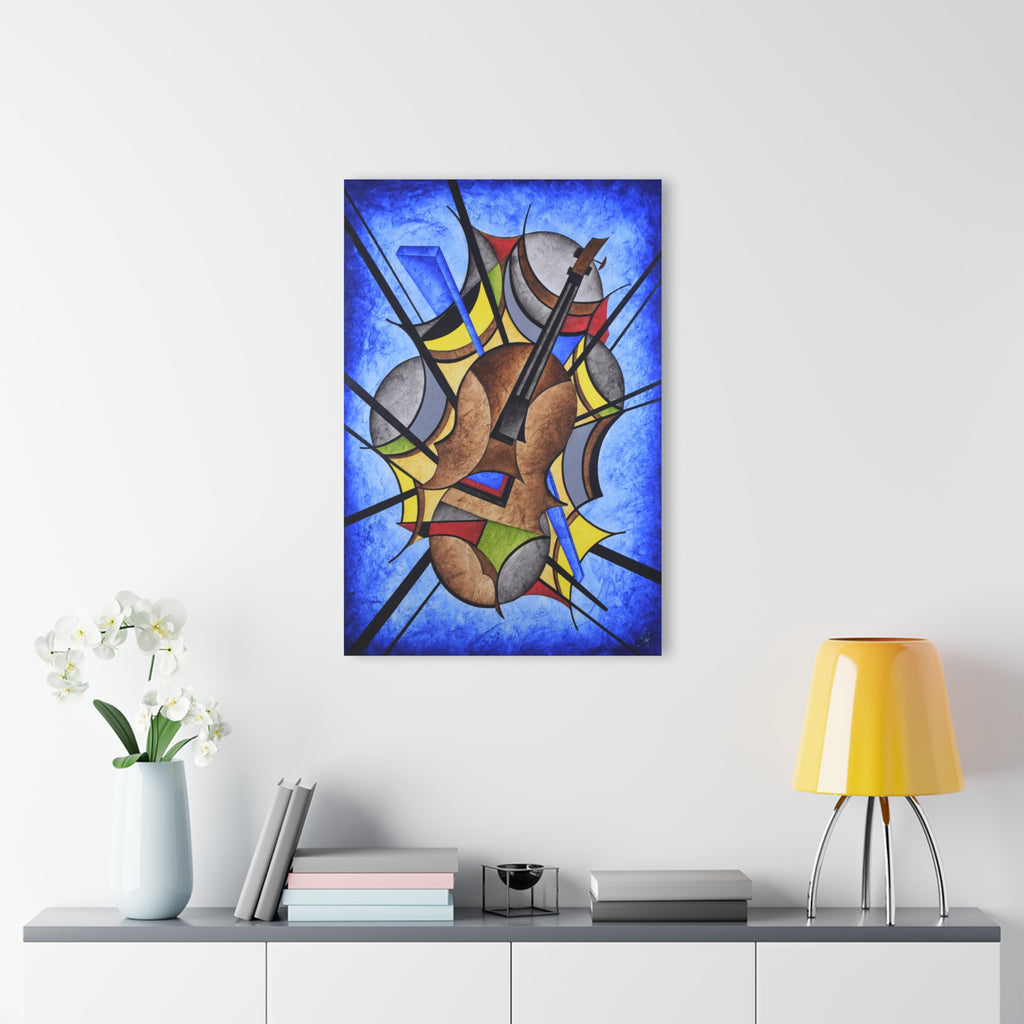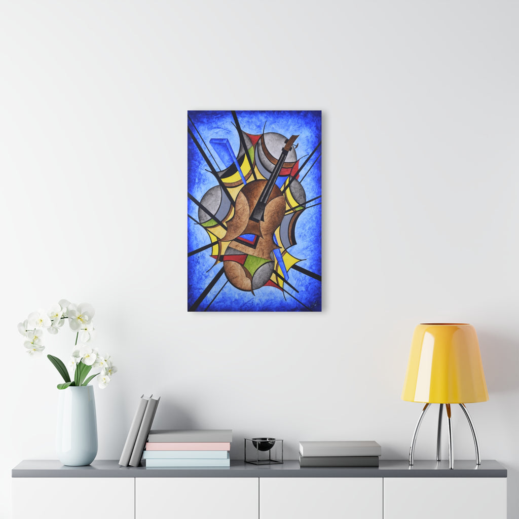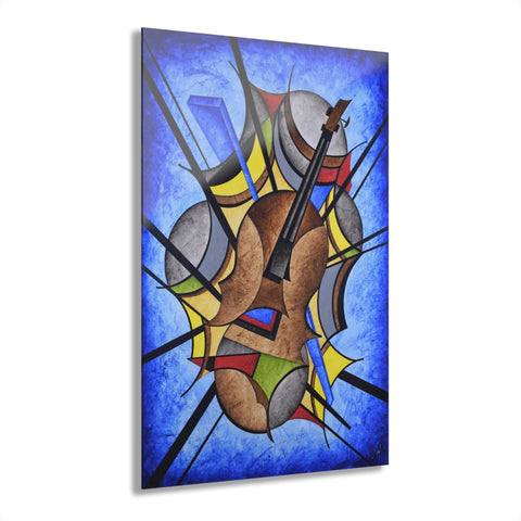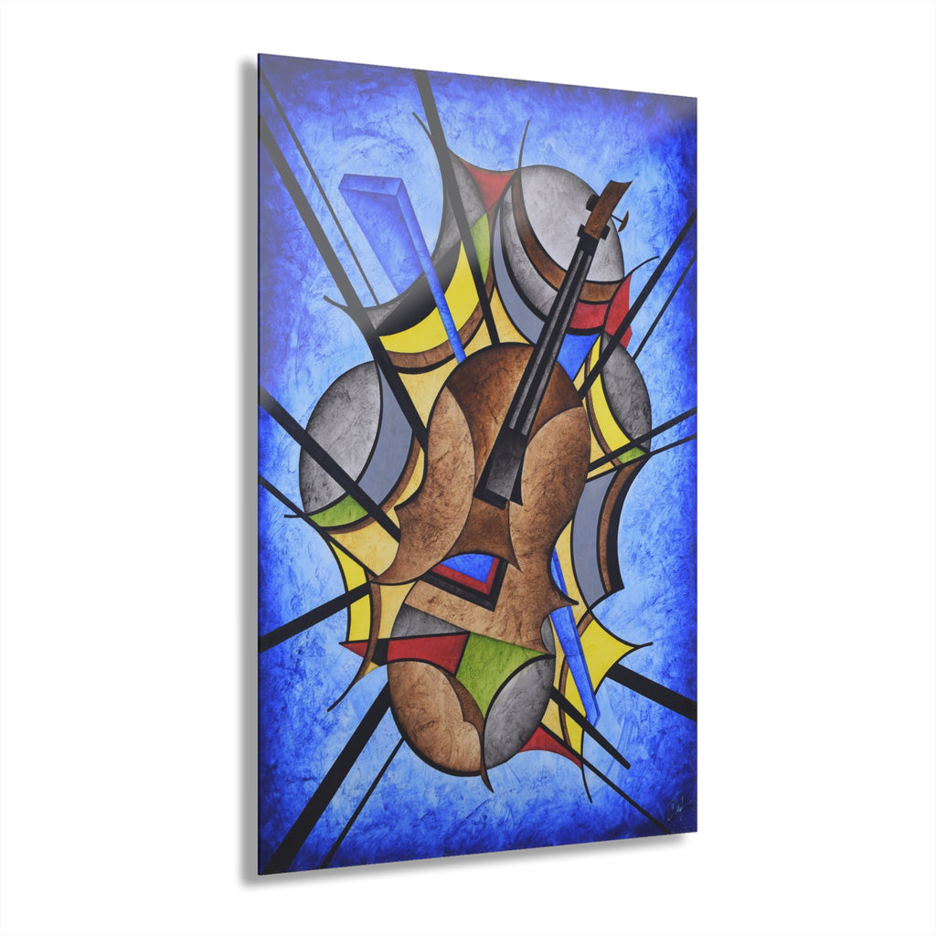 "The Cello" by Erik Hesson. This Acrylic Fine Art Giclée Print is made to seem like the artwork is painted under a glass surface. These gallery-quality artworks are second-surface printed directly on a 1/4" thick solid acrylic panel using archival inks for a stunning result. Each acrylic artwork comes ready to hang and floats 1.5" off the wall.